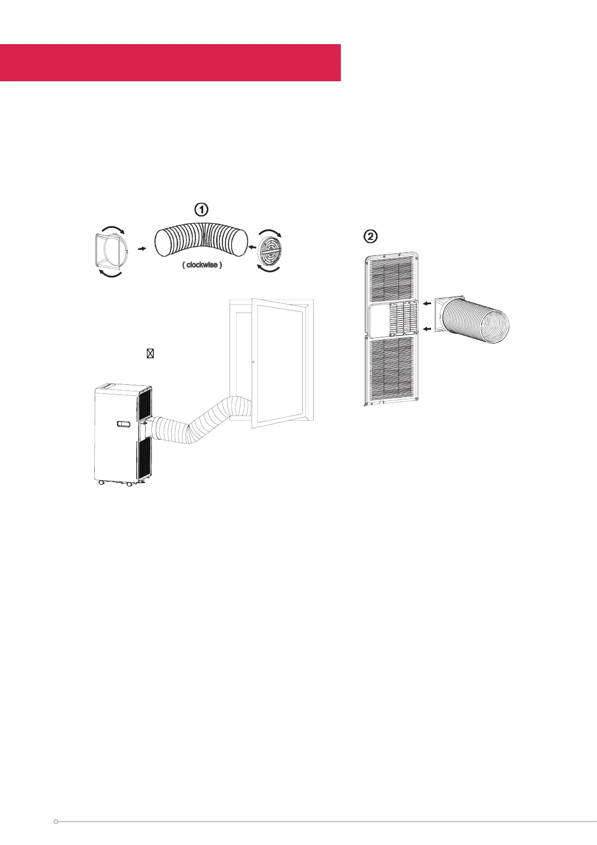 1.  Twist the housing adapter and the window connector to the ends of the exhaust