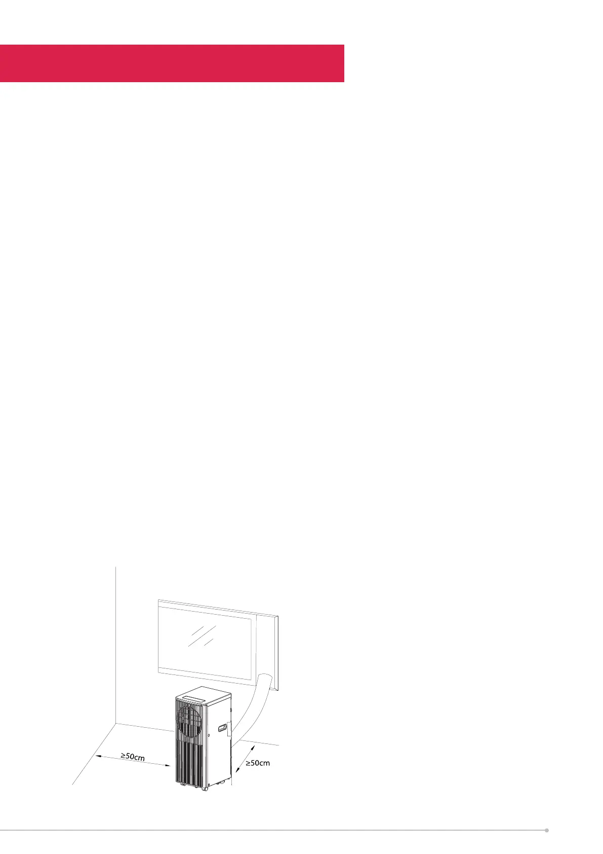 • The unit should be located at least 50cm from the nearest wall to ensure proper
