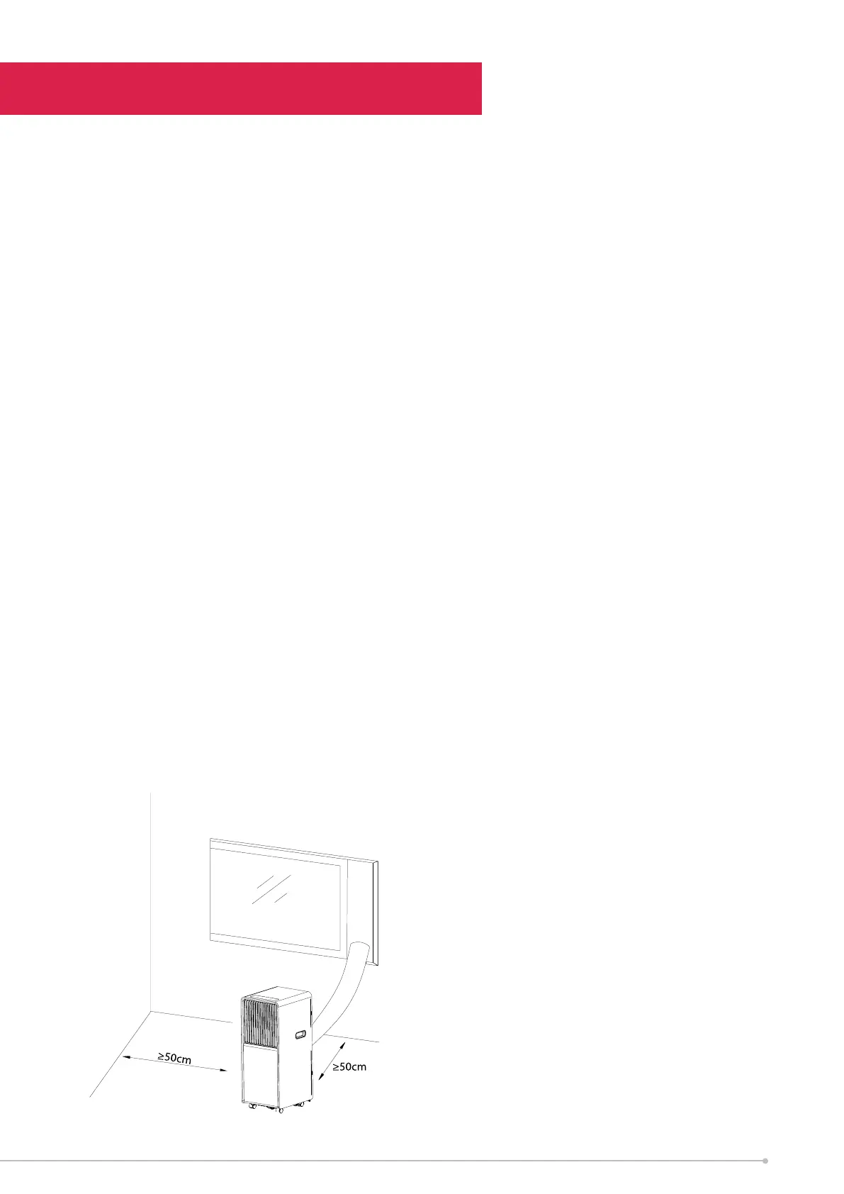 • The unit should be located at least 50cm from the nearest wall to ensure proper