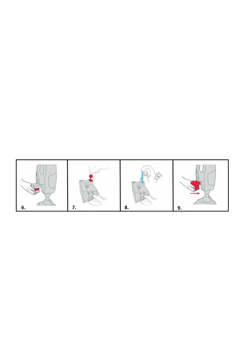 • Maak de reservoirs voor schoon water en reinigngsmiddel niet