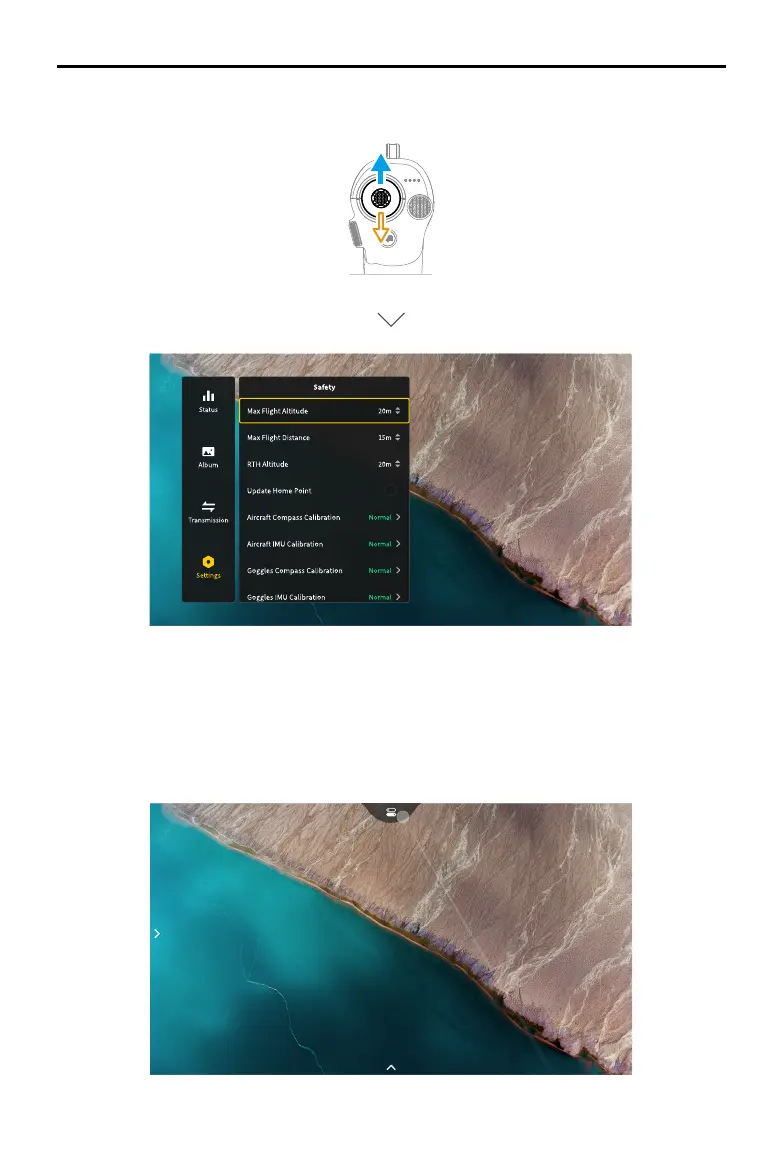 • Verplaats de cursor naar de pijl bovenaan het scherm, druk op de accelerator om het