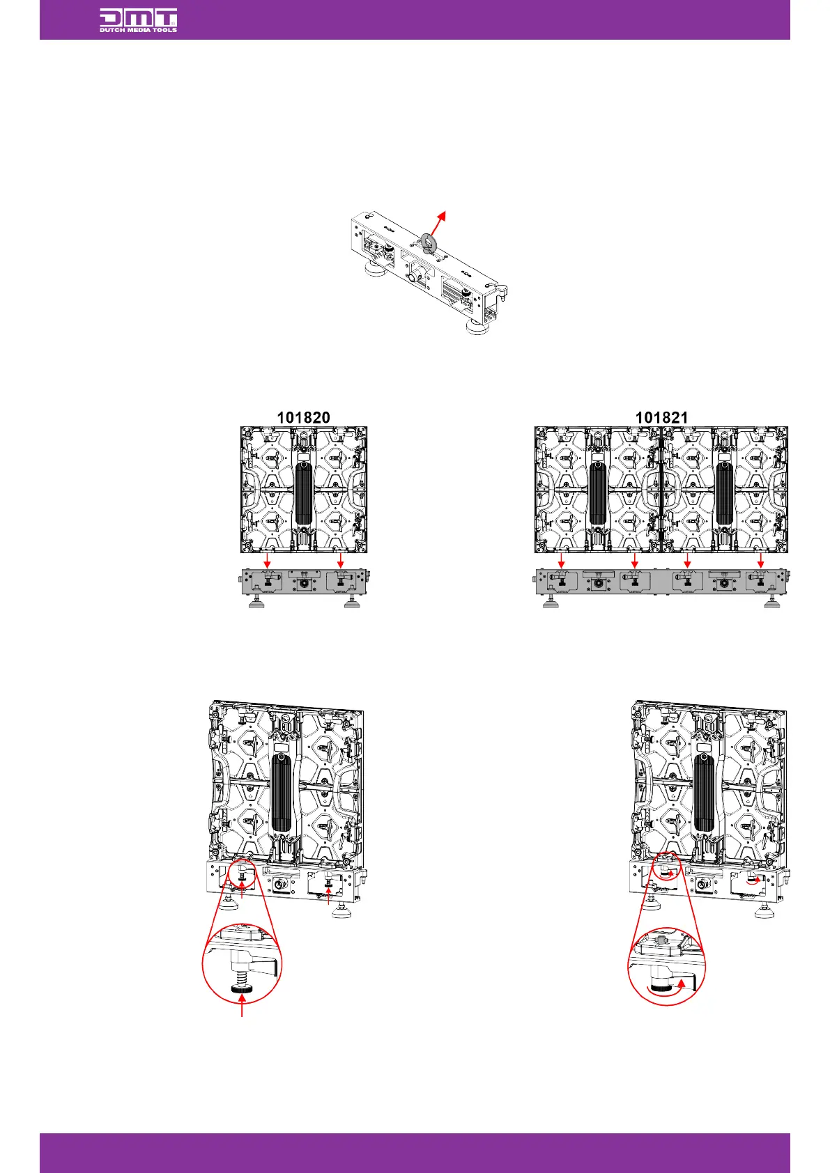 To install the LED screen on top of a standing rigging bar, follow the steps below: