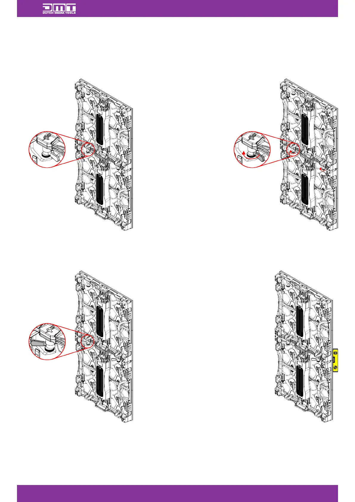 Make sure that the LED screen is secured and leveled before you continue with the installation, as shown in