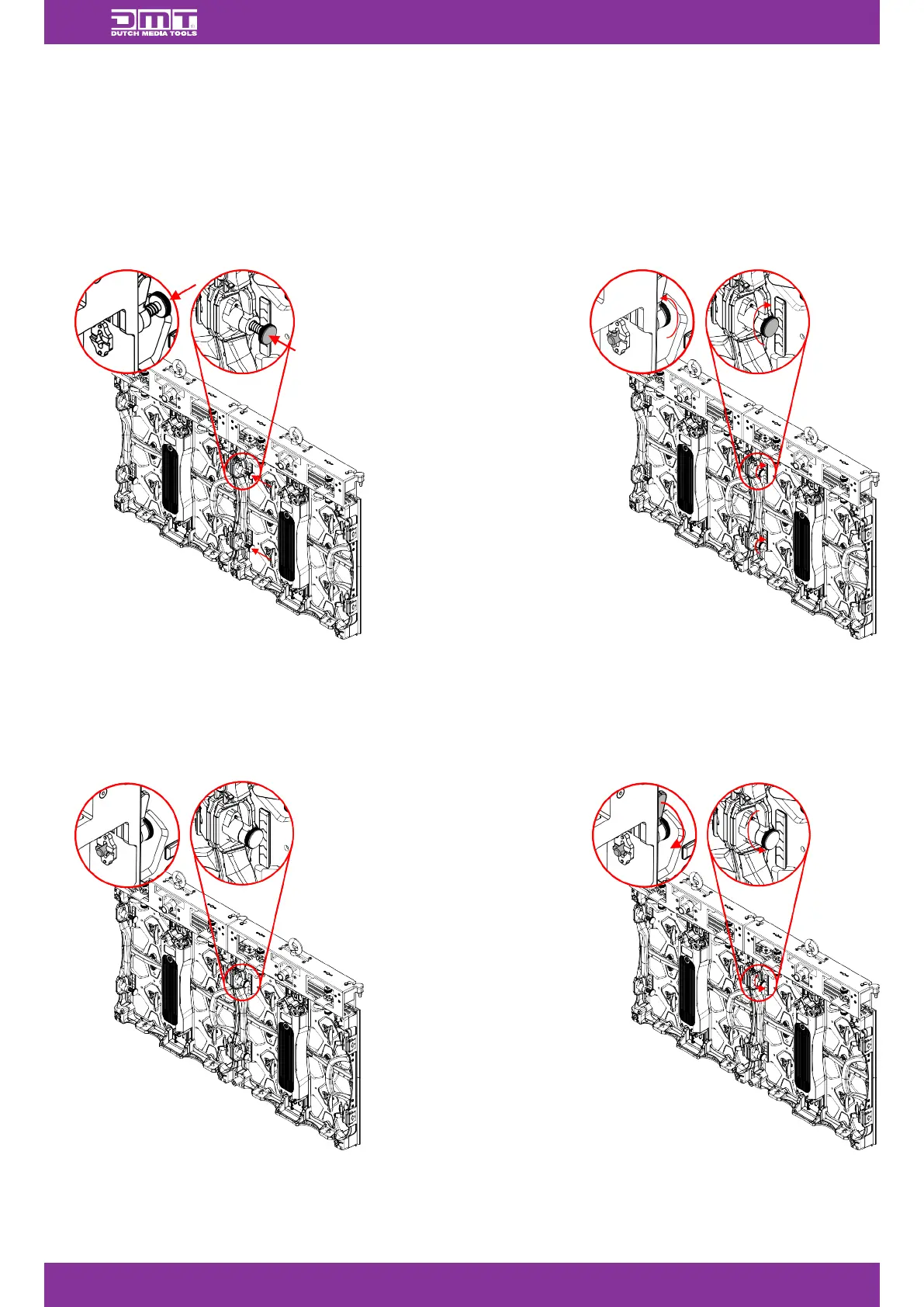 05) Repeat steps 1–4 for the bottom locking mechanism (16) of the LED screen.05)