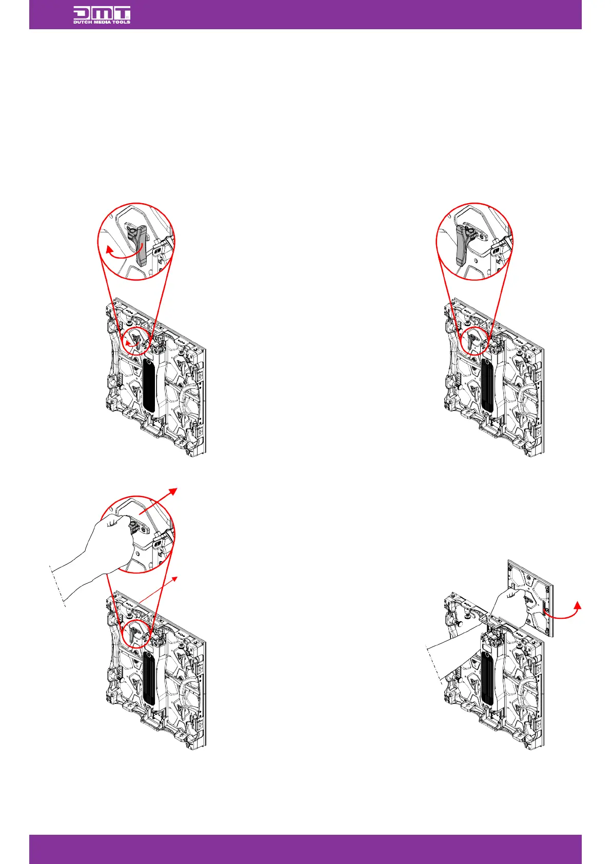 03) While holding the LED screen module by the service handle (15), turn the LED screen module carefully03)