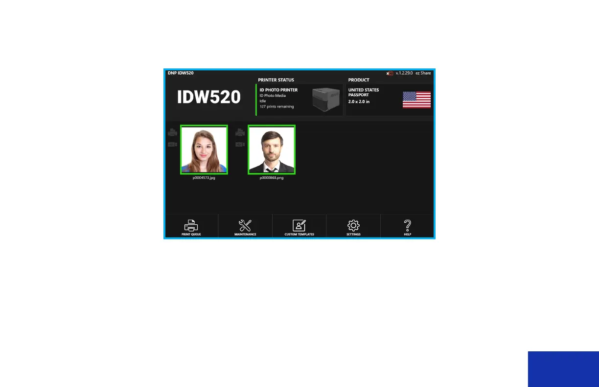 any photos that have been taken during the current IDW520 work session. The screen can be divided into three sections: