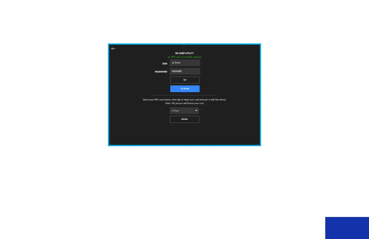 5. Click the Repair button. Then after the repair is complete, you will see the message “Wi-Fi card successfully