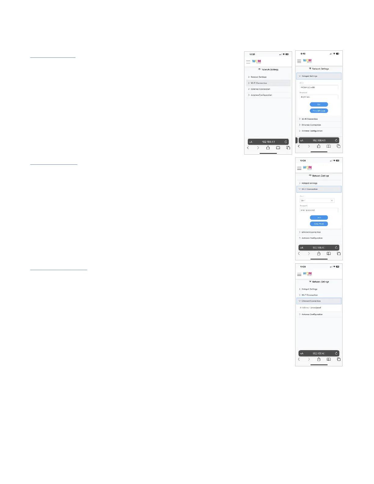 Hotspot Settings – allow you to connect your device directly to the WCM-