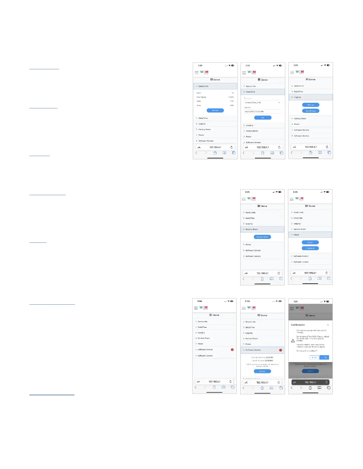 The Device menu provides access to the WCM-Plus information and settings menus.