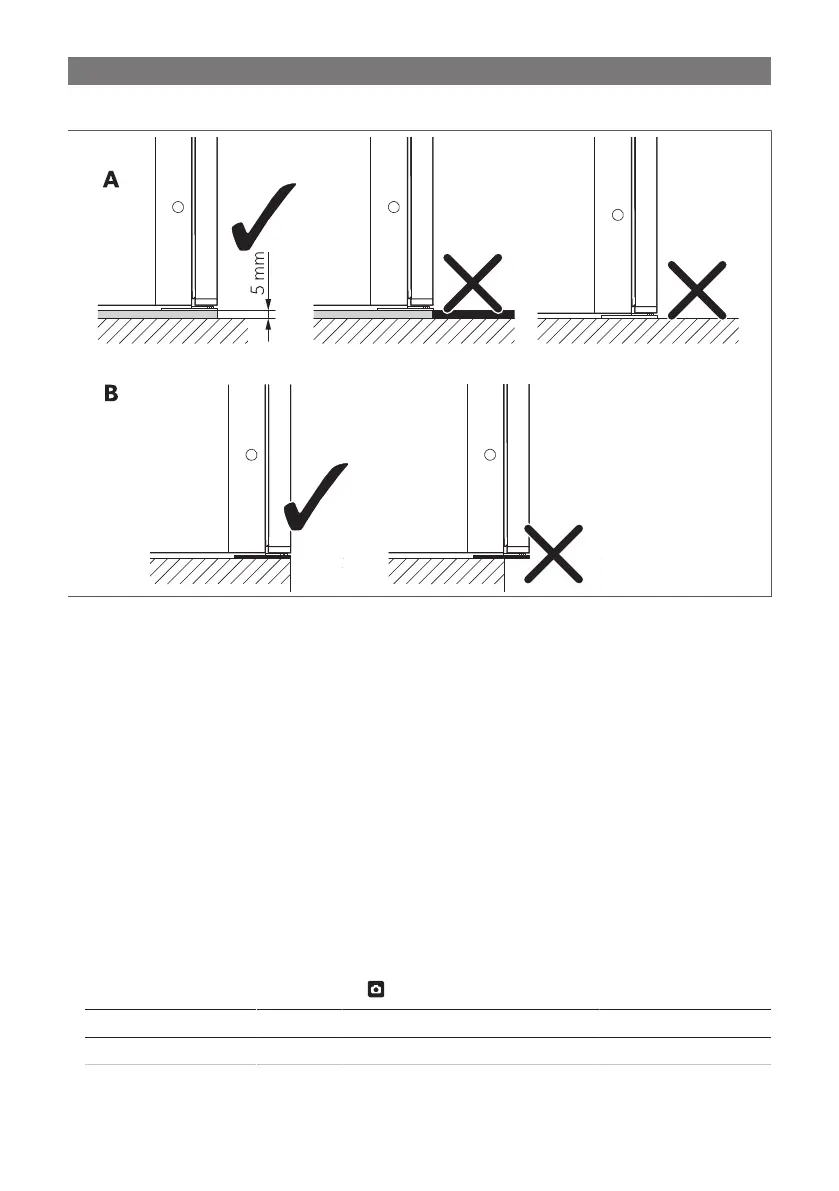 • Installera kylskåpet på minst 5mm avstånd från golvet (A) för att säkerställa att inga hinder (t.ex. mattor) stör