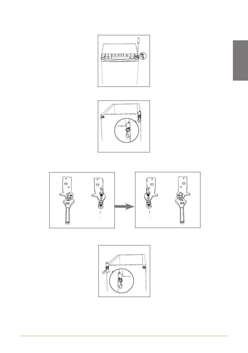 4. Unscrew bottom hinge. Then remove the adjustable feet from both