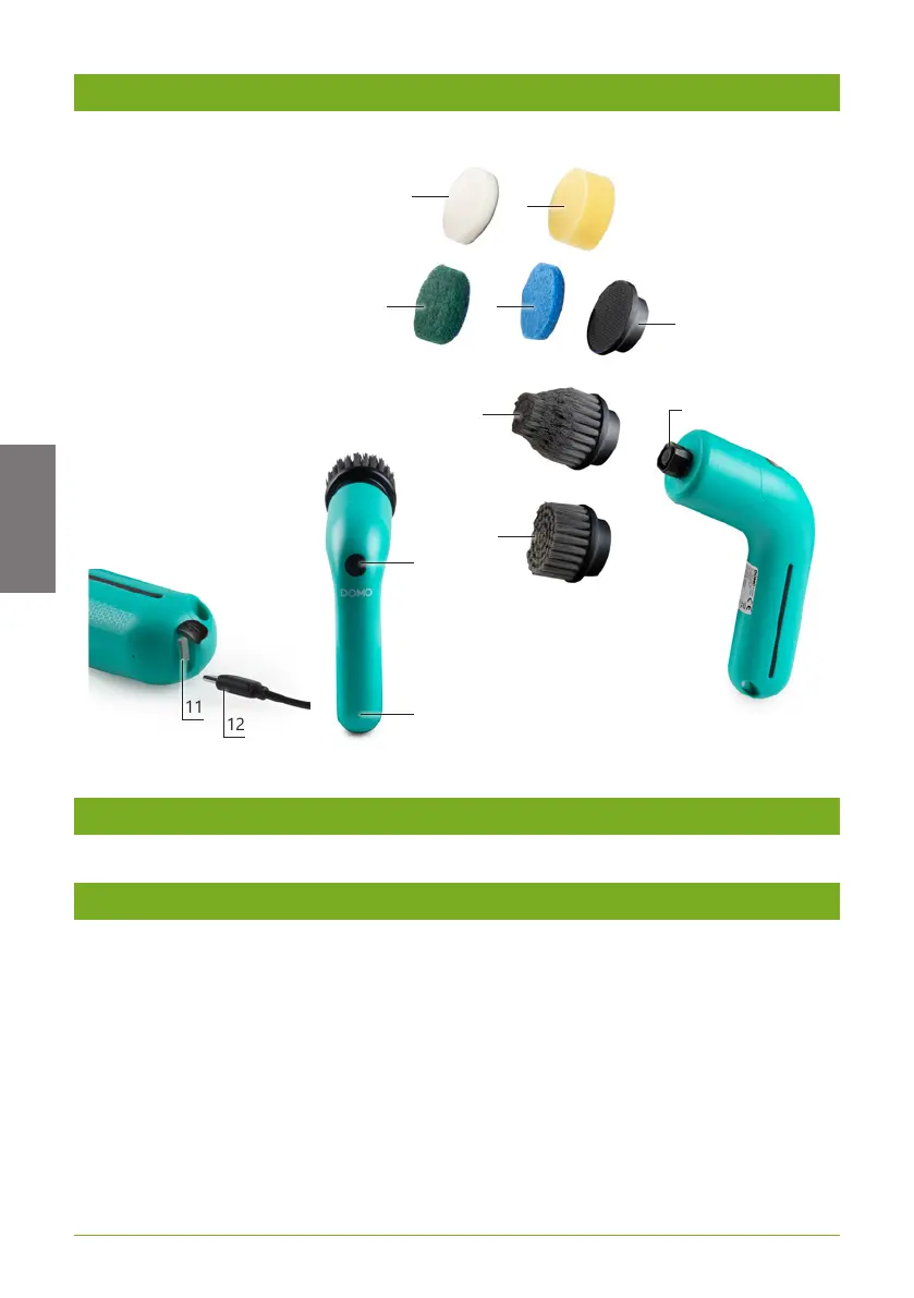 • Pointed brush: for hard-to-reach places such as corners of tiles, taps, rims, etc.