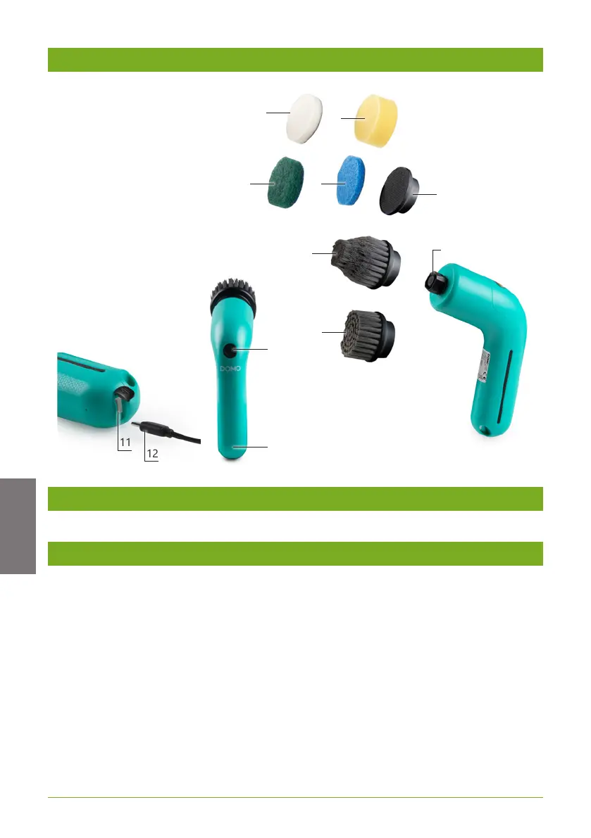 • Spazzola a punta: per le aree dicili da raggiungere come angoli delle piastrelle, rubinetti,