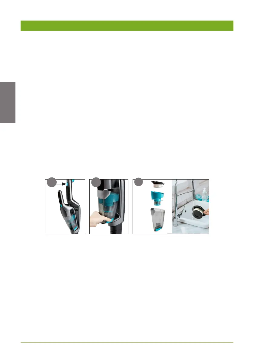 Leeren Sie den Staubbehälter nach jedem Reinigungsvorgang: