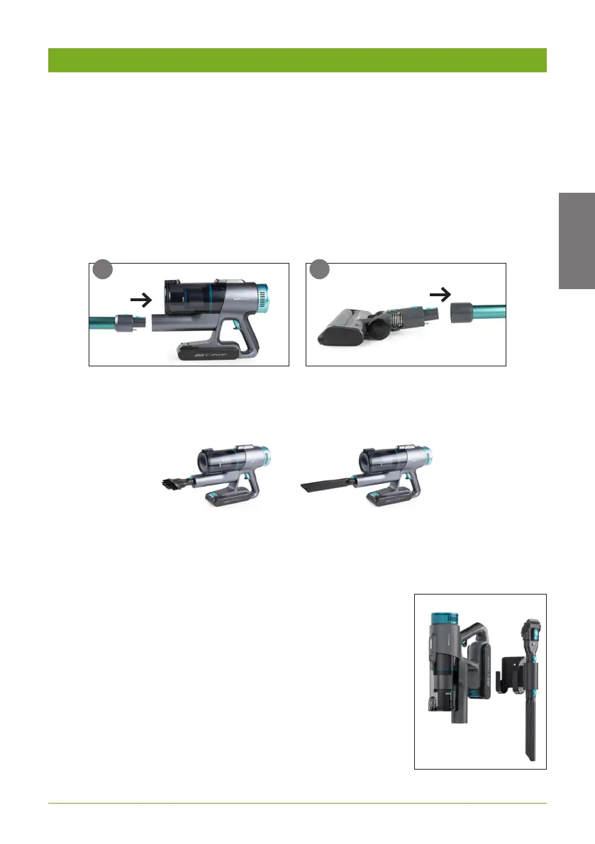 Sie können die verschiedenen Zubehörteile am Stiel (Stielstaubsauger) oder direkt am Motorteil