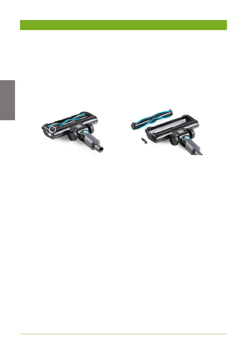 5. Die rotierende Bodenbürste darf unter ießendem Wasser abgespült werden. Sorgen Sie dafür,
