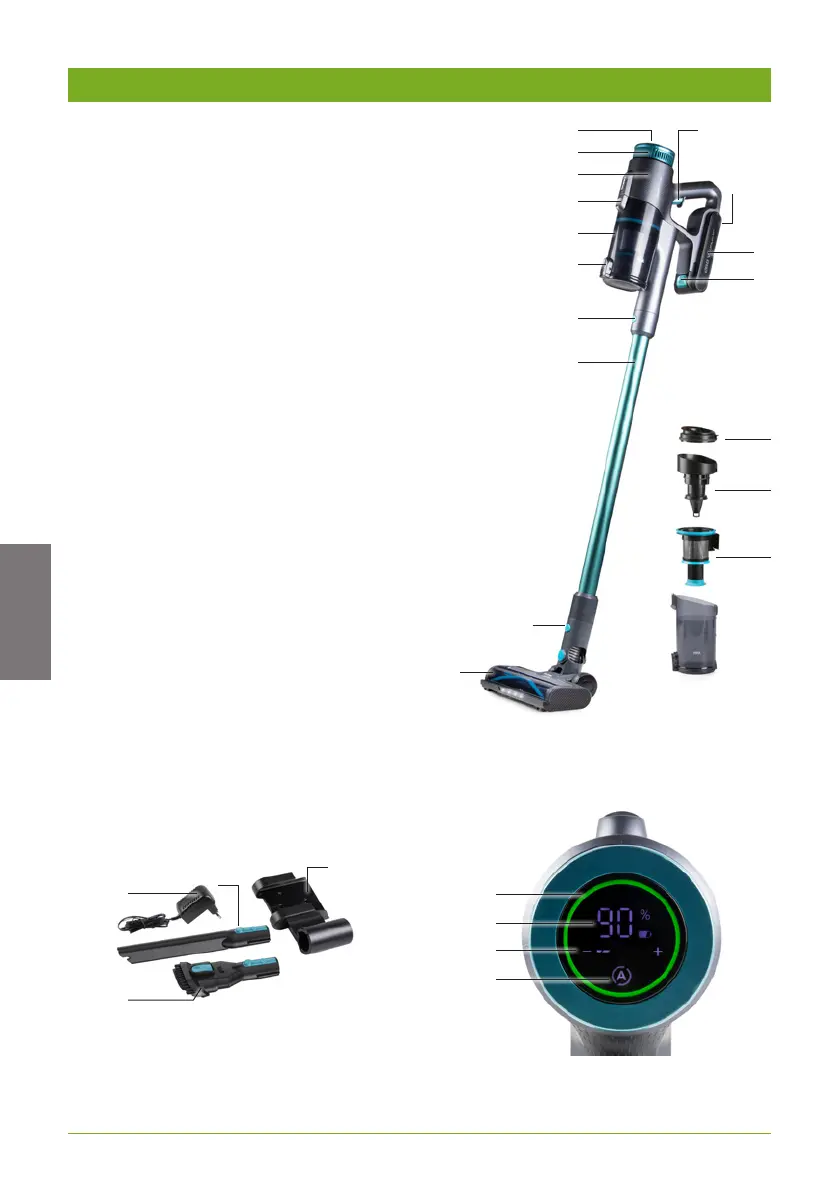 16.  Botón de desbloqueo de la boca de aspiración del suelo