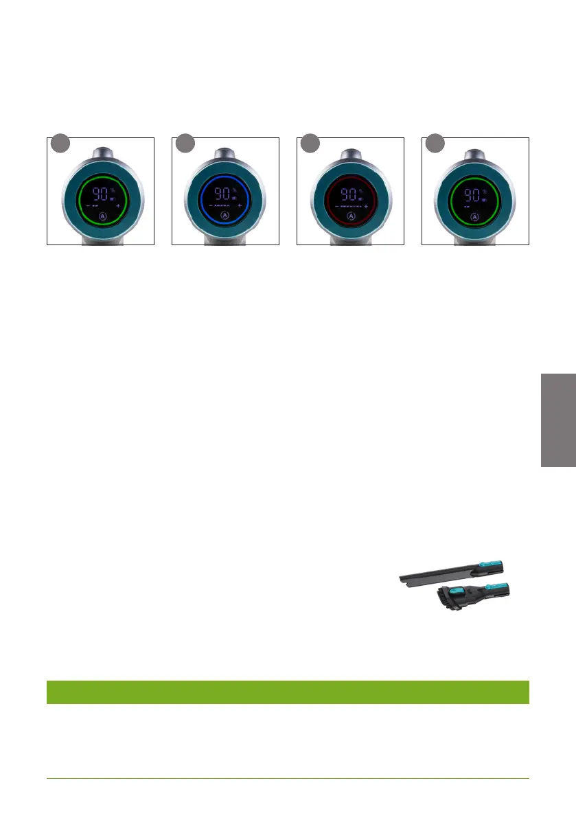 consecuencia. El anillo luminoso y la barra indicadora muestran la potencia de aspiración