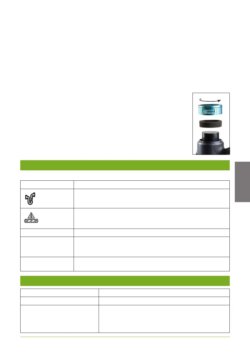 1. Desenrosque la tapa del ltro de escape. Observe el símbolo de bloqueo y el