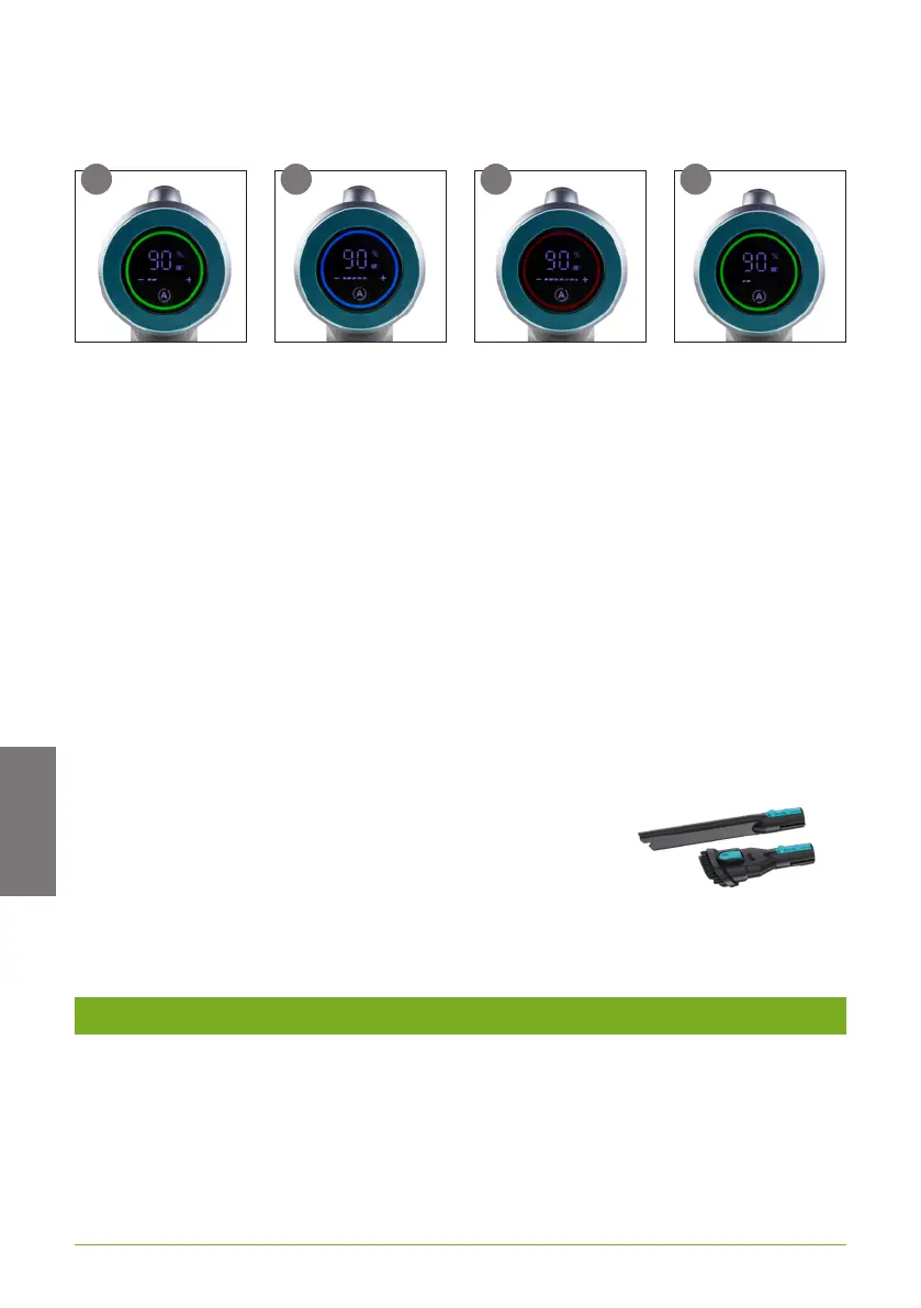 luminoso e la barra indicatrice indicano la potenza di aspirazione applicabile. I pulsanti
