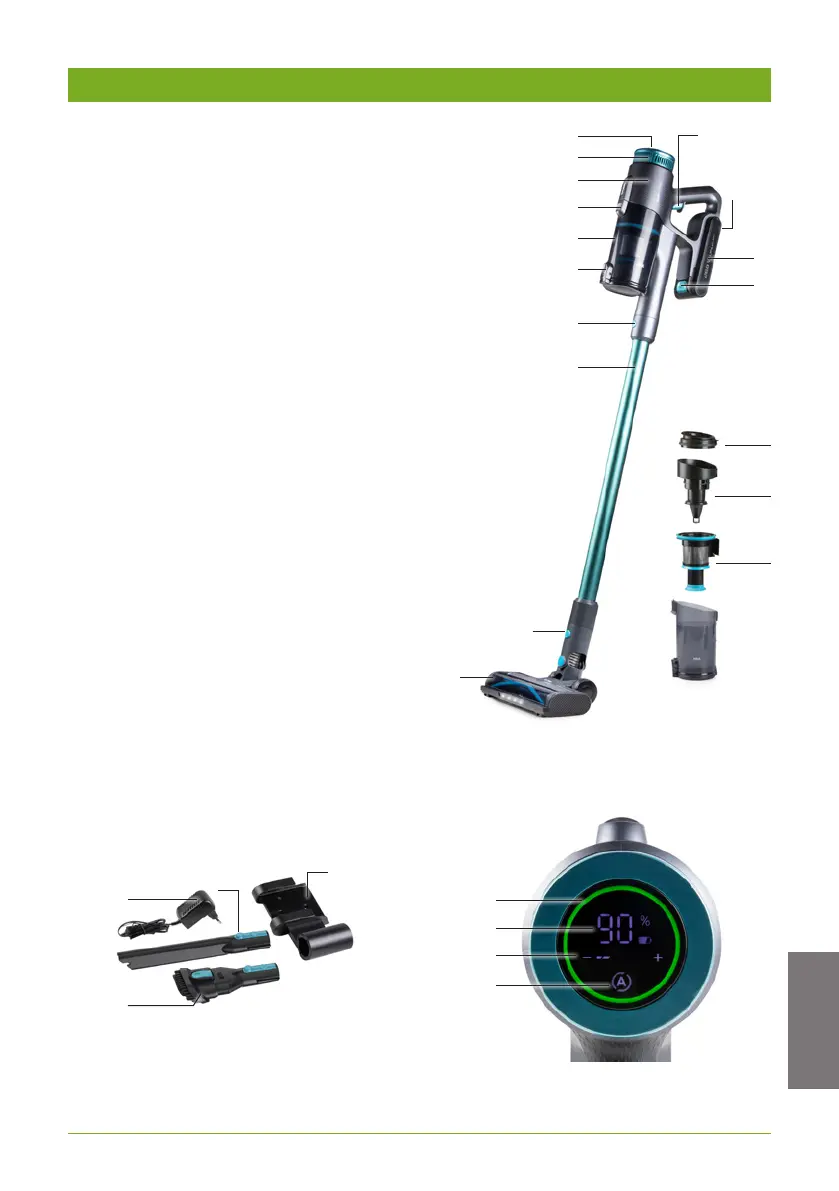 16. Tlačidlo pre uvoľnenie podlahovej hubice