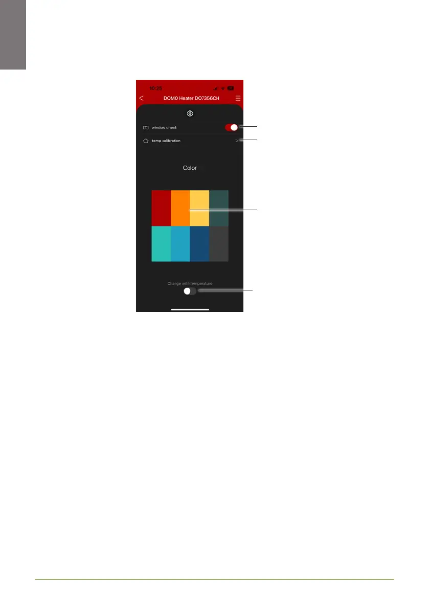 Bij inschakeling van "Verander met kamertemperatuur" zal de achtergrondkleur van de app wijzigen