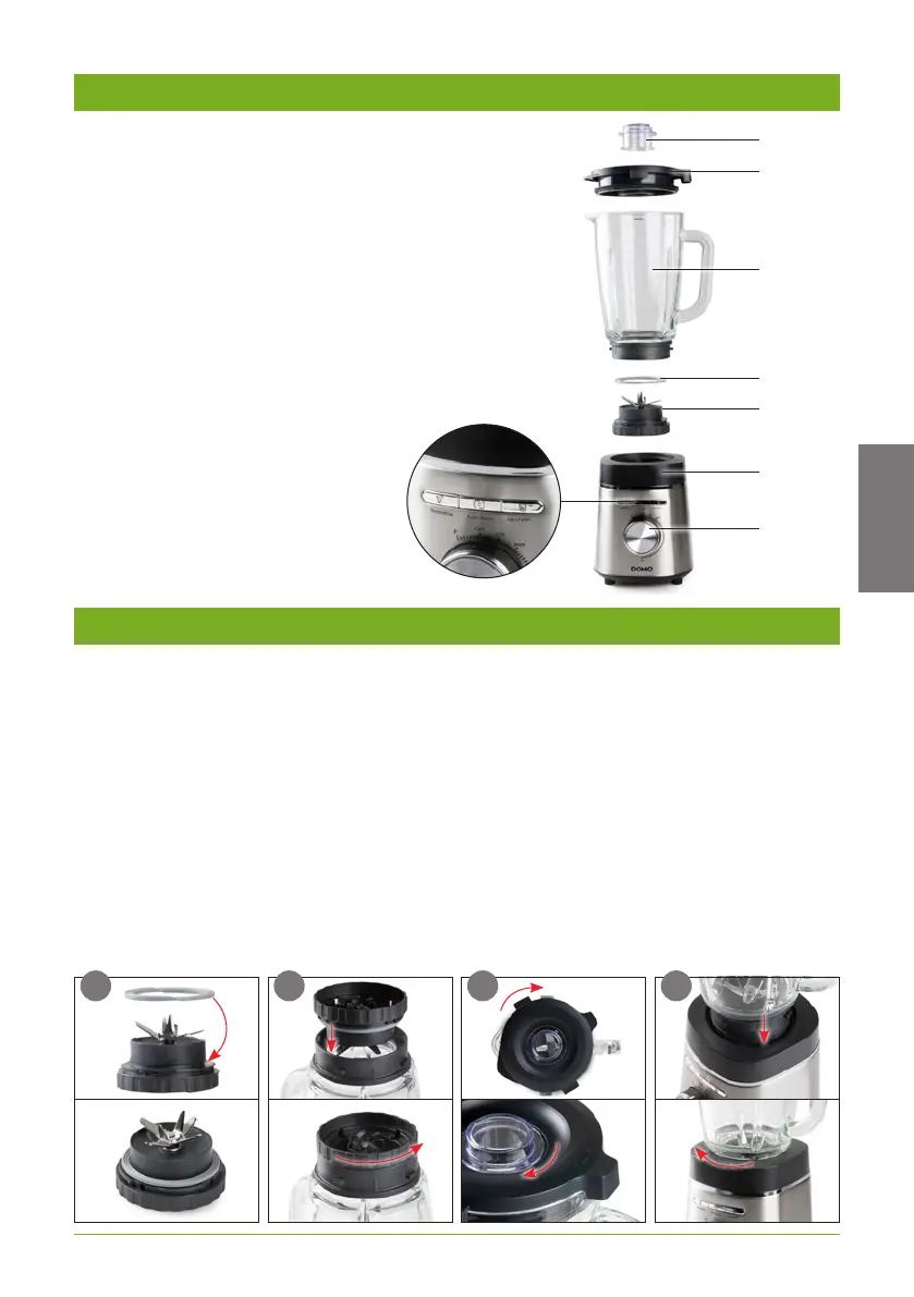 jug, using the recesses provided. Turn the blade anti-clockwise until it locks into place. Turn