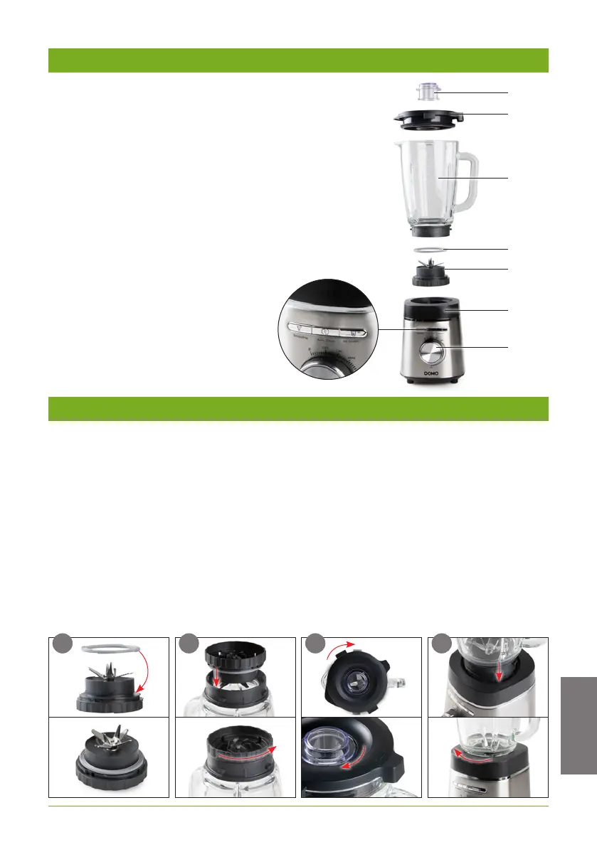 nádoby do príslušných priehlbín. Otáčajte jednotkou s nožmi proti smeru hodinových