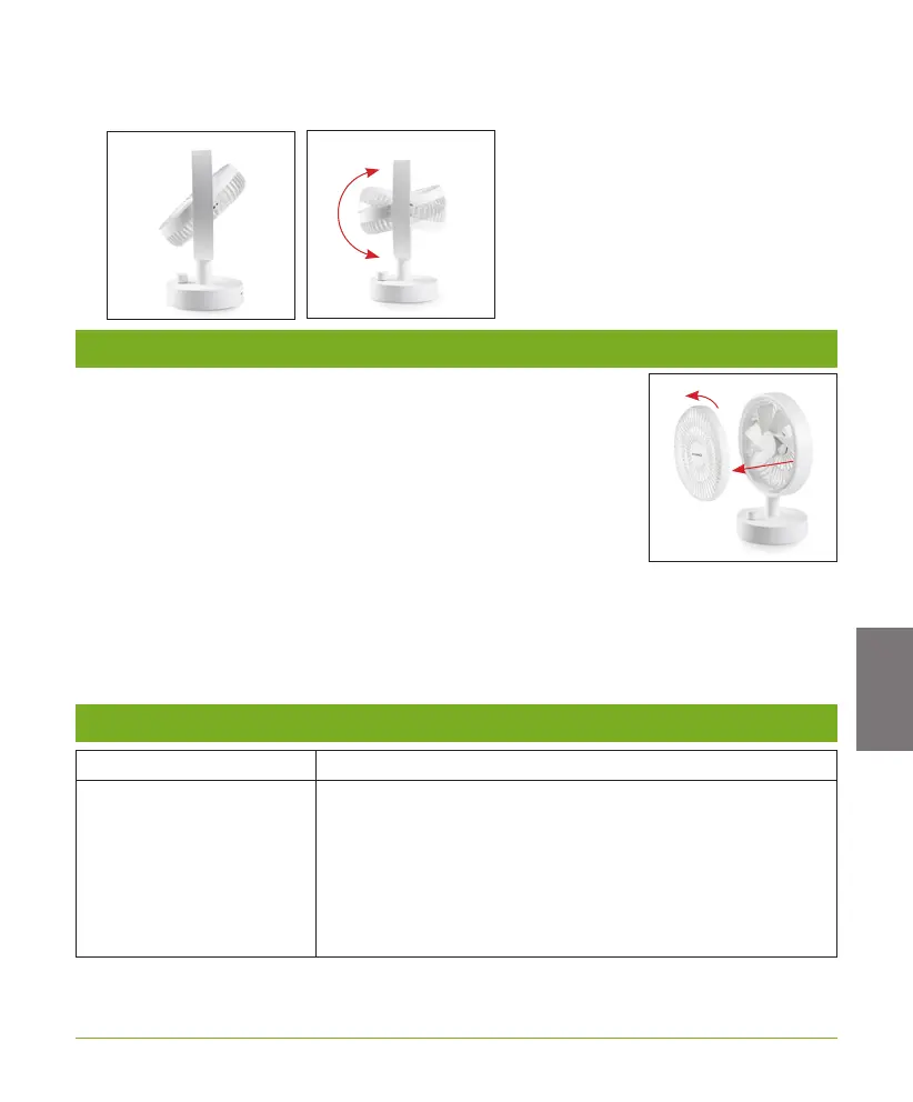 • La griglia del ventilatore può essere regolata manualmente verso l'alto e verso il basso.