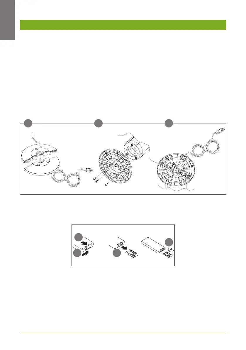 4. Bevestig de basis aan de ventilator met de meegeleverde schroeven. Geleid het snoer naar de
