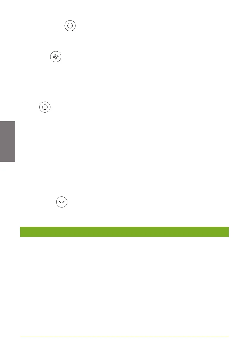 Press this button to turn the device on or o. The corresponding indicator light lights up. The fan