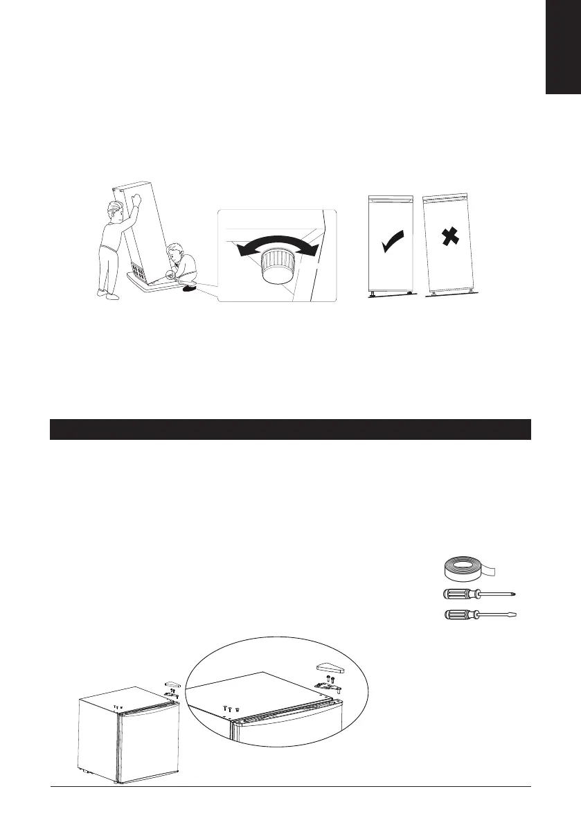 apparaat leeg is. Laat het toestel na het omkeren van de deur 8 uur staan vooraleer het aan te zetten. Zo