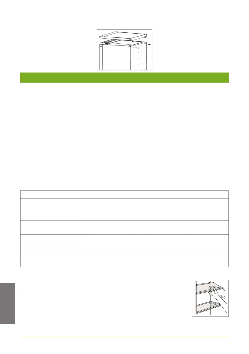 • Neskladujte tu potraviny s obmedzenou trvanlivosťou