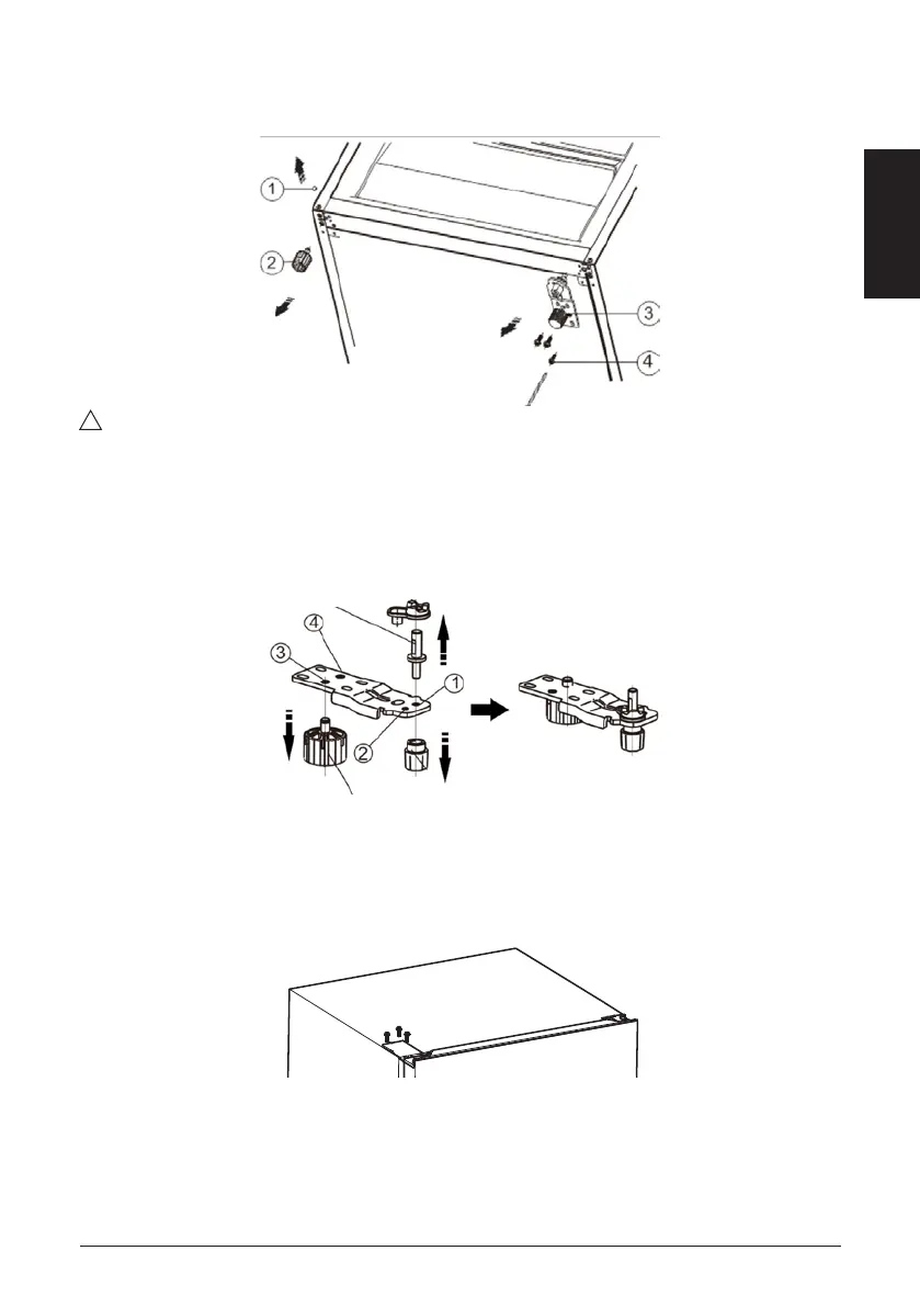 cache-vis ① et le pied de réglage ② du côté gauche et replacez-les à droite.