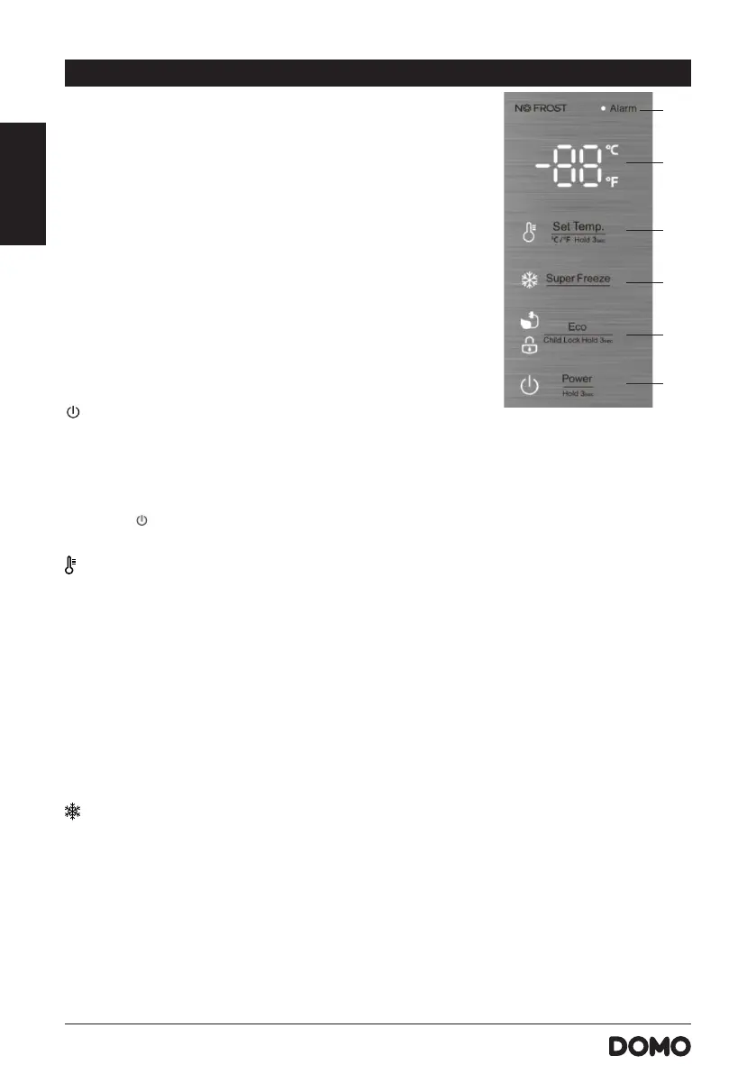 conditions normales, nous vous conseillons de le régler sur -18 °C. Maintenez le bouton « Set.Temp. »