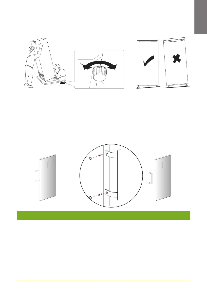is. Laat het toestel na het omkeren van de deur minstens 2 uur staan vooraleer het aan te zetten. Zo
