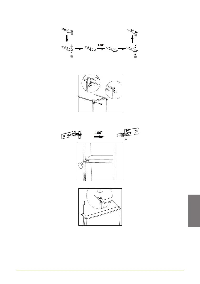 6. Odejměte čep z desky závěsu/pantu a otočte jej o 180°. Čep znovu nasaďte tak, aby při otočení