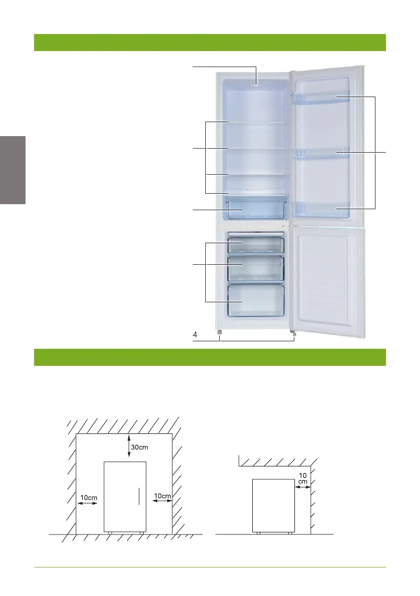 • Die Luft rund um den Kühlschrank sollte frei zirkulieren können.