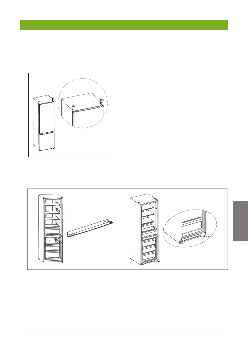fori e il piedino di livellamento. Montare la cerniera inferiore sul lato opposto.
