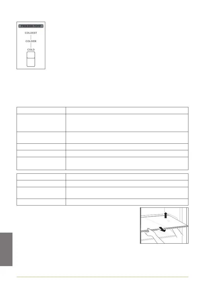 • Posuňte spínač hore a teplota v mrazničke klesne. Posuňte spínač dole a
