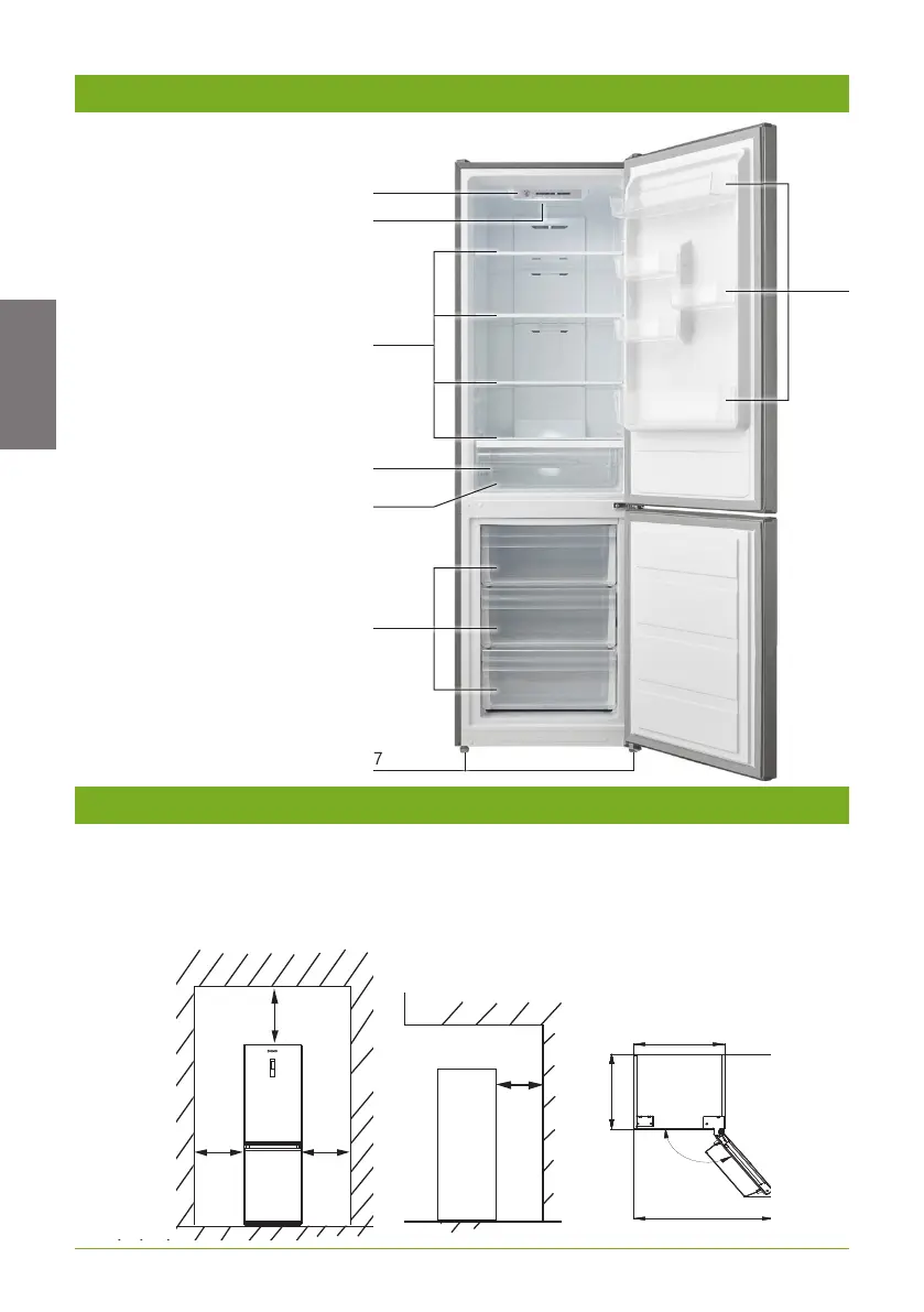 • Die Luft rund um den Kühlschrank sollte frei zirkulieren können.