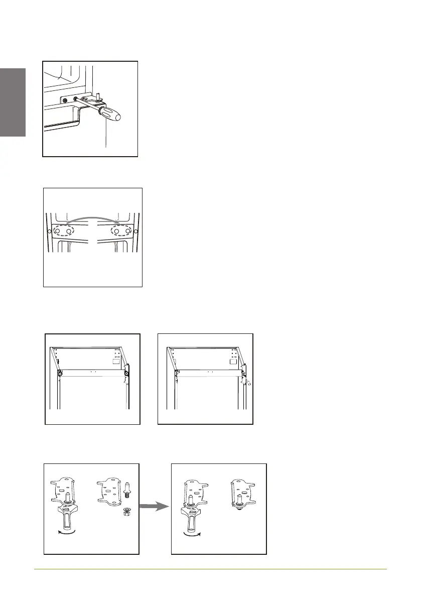 9. Unscrew bottom hinge. Then remove the adjustable feet from both side.