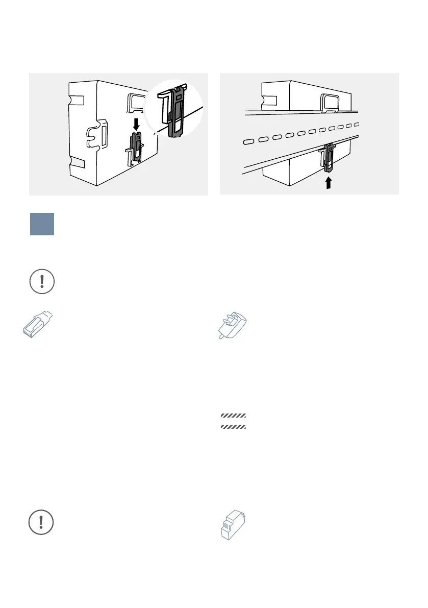 The device can be mounted on DIN-Rail. Use the DIN rail adapter on the back of the unit.