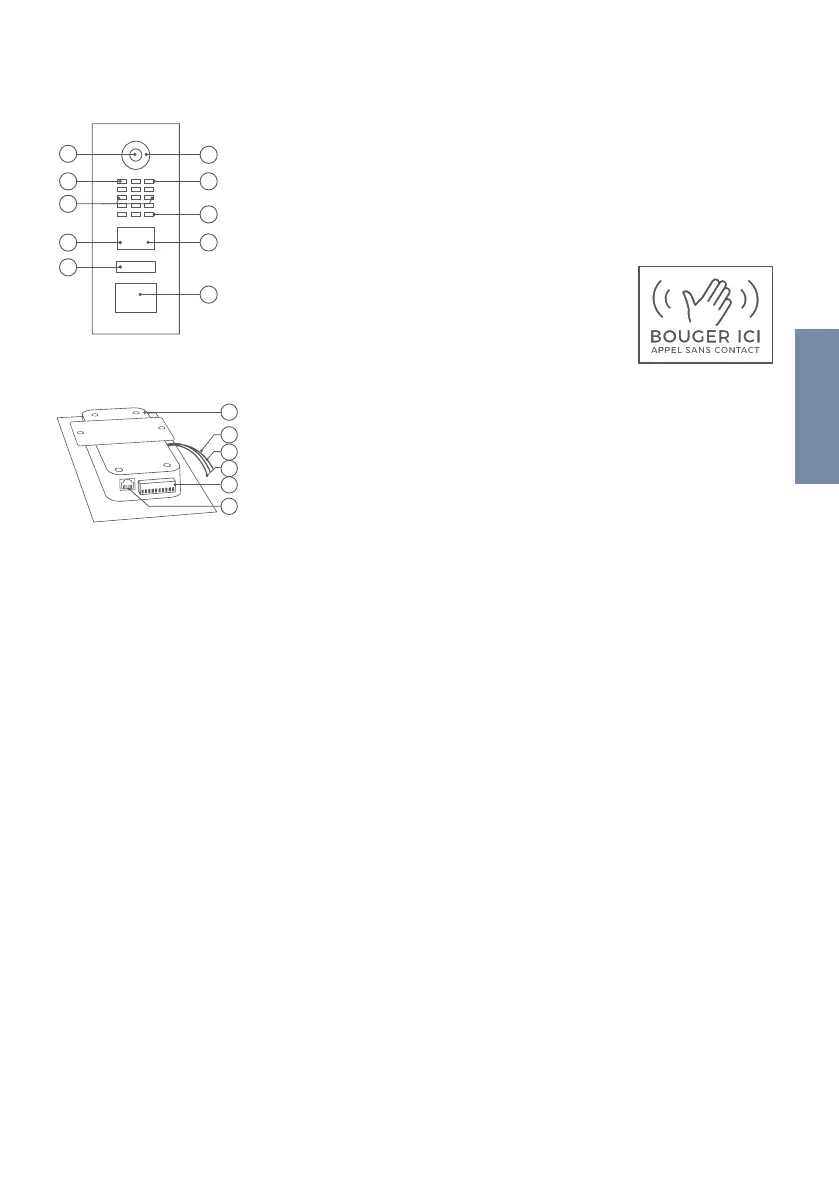 pour l‘accessibilité, y compris l‘achage d‘état avec trois pictogrammes [appel, conversation, ouverture de porte],