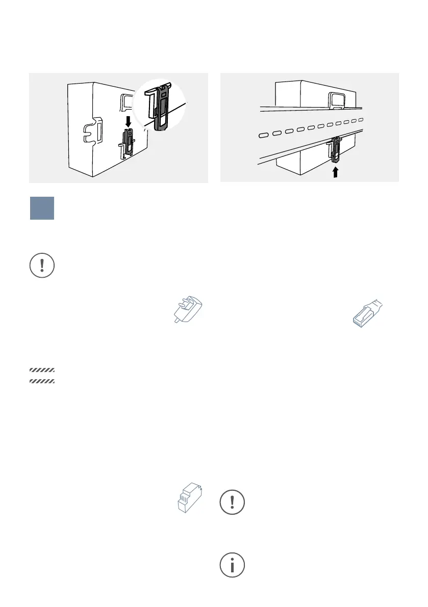 The device can be mounted on DIN-Rail. Use the DIN rail adapter on the back of the unit.