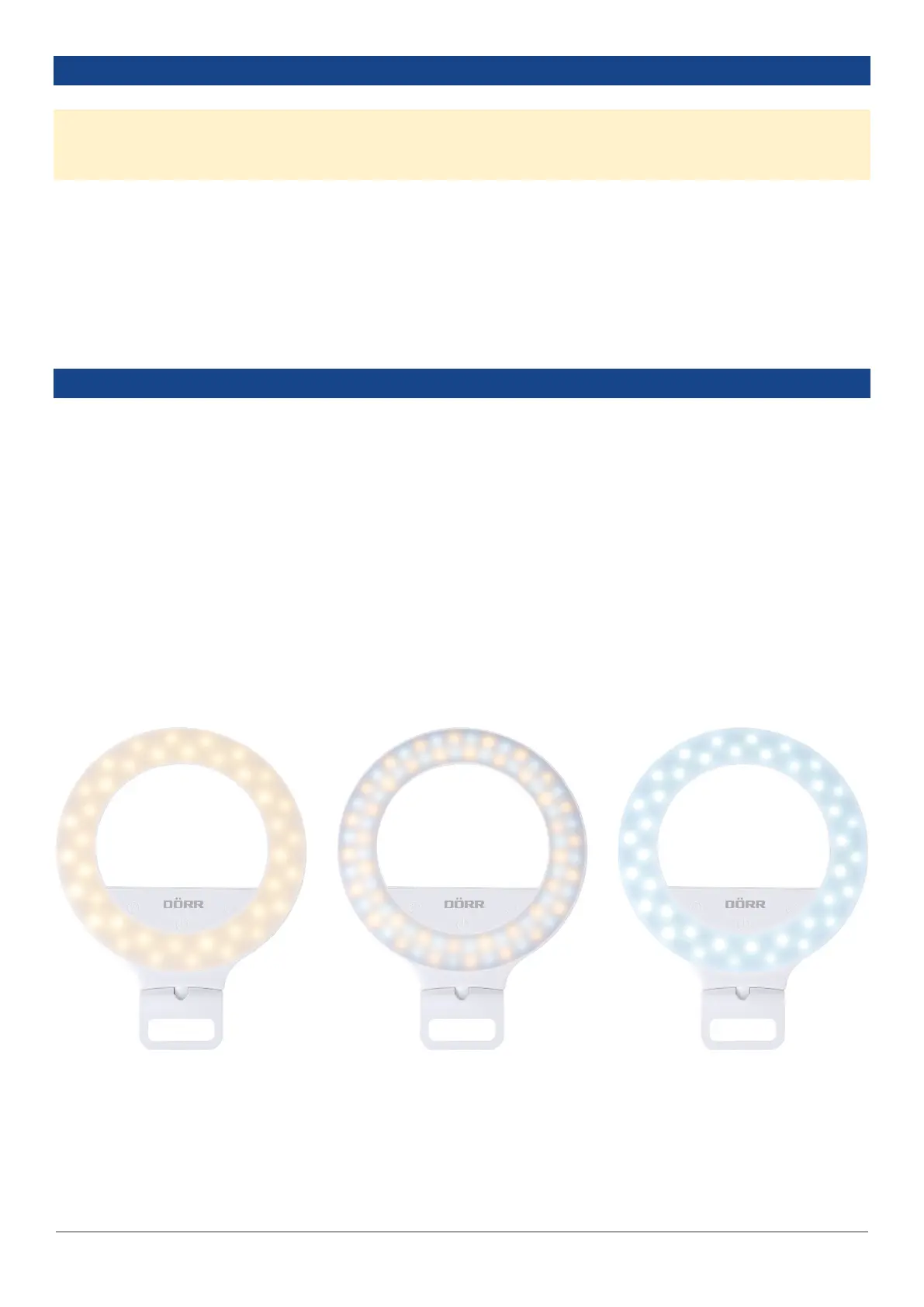 To switch on the LED selfie ring light, tap the On/Off button (04) and hold it for about 1 second. To switch off the ring light, tap on