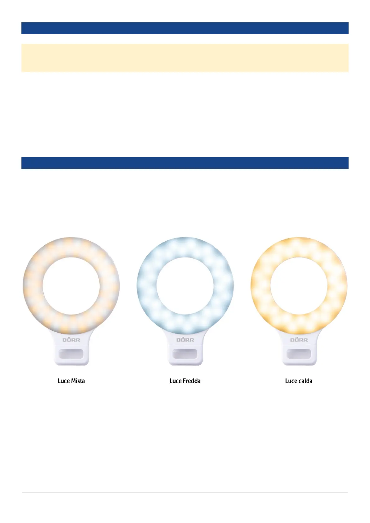 Per accendere dell'anello luce LED, premere brevemente il pulsante On/Off (04). L'anello luce LED è in modalità luce mista con circa