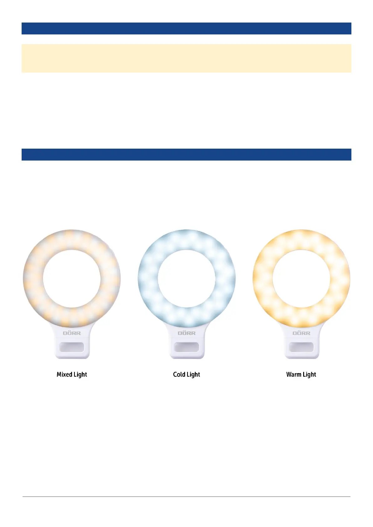 To switch on the LED selfie ring light, press the On/Off button (04) briefly. The LED selfie ring light is in light mode mixed light with