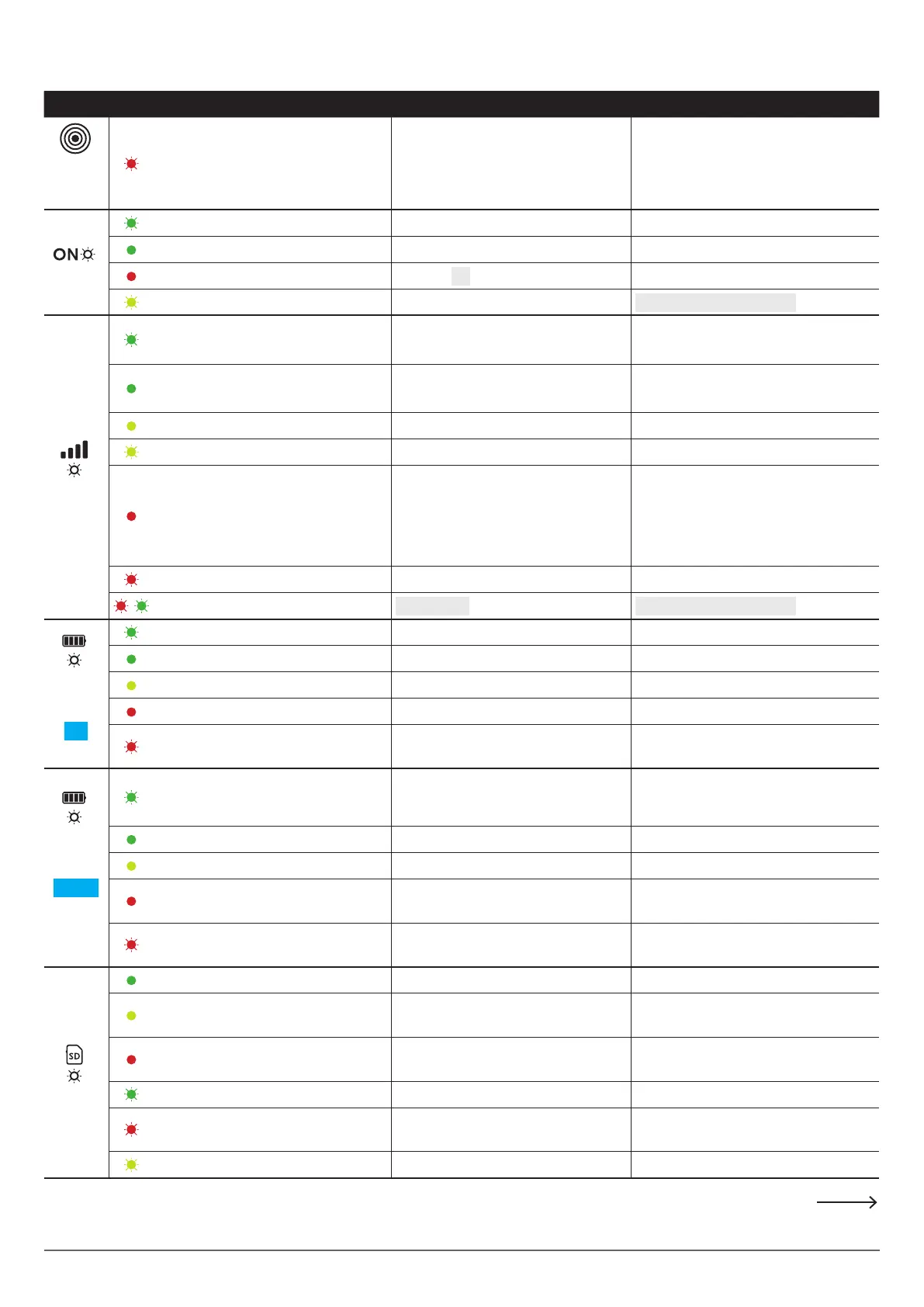 lights constantly red Battery capacity below 30%. Insert fresh batteries as soon as possible.