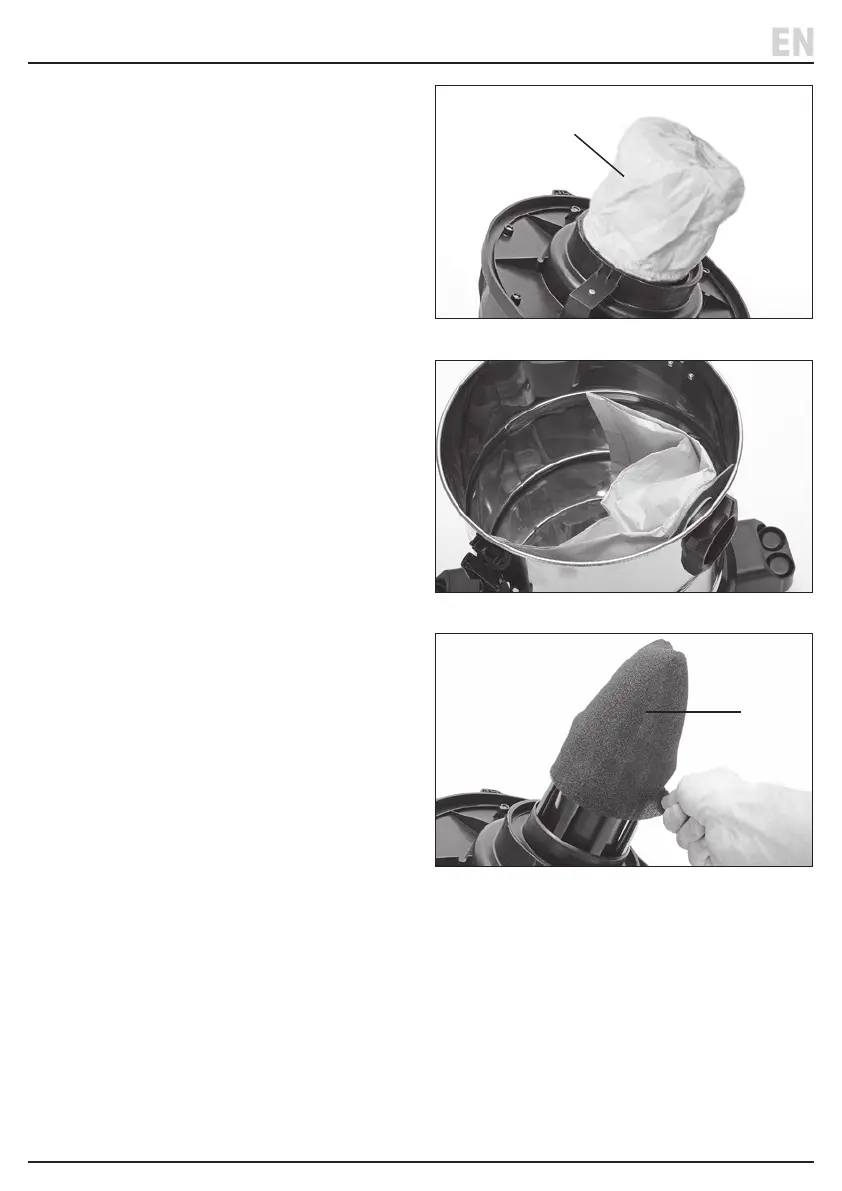 2. Remove the dustbag (18) and cloth lter (16) if tted.